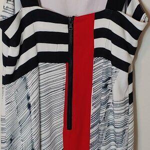 Gorgeous dress for work and special events. Sleeveless with thick straps and a square neckline. Zip back.