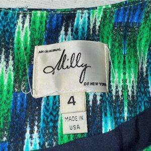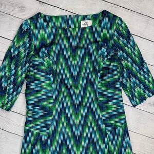 MILLY Edie Zag Sheath Dress in Green and Blue Zig Zag Pattern Size 4
