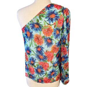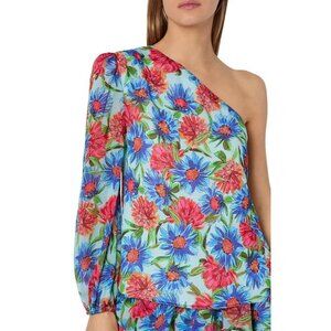 MILLY Emilia Painted Dahlia Print One Shoulder Long Sleeve Top Med NWT