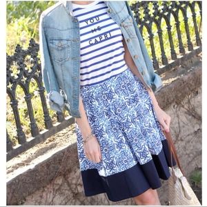 Bring the cool colors of Capri to your wardrobe with this new women's tile print skirt by MILLY for DesigNation. In blue & white. Available in size small and medium.