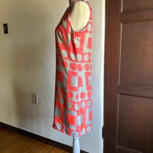 MILLY | Geometric Silk Twill Mod Shift Cocktail Dress Coral and Gray - Size 4
