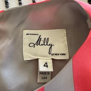 Vintage Milly of New York Shift Dress - From the 2000s, this dress is made with silk twill in a hot coral and grey mod pattern. With a timeless silhouette, fully lined.
