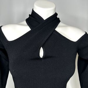 MILLY Infusion Knit Dress Black Bodycon Stretch Size Small Cutout Cold Shoulder