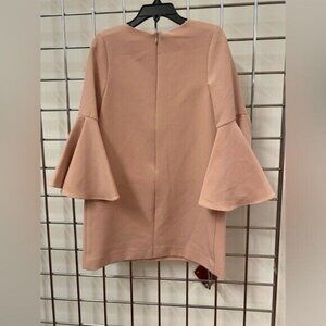 Step out in style with this elegant pink dress featuring chic flare sleeves. Perfect for any occasion.