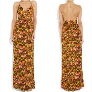 MILLY NY GOLD CHAIN HALTER MAXI DRESS