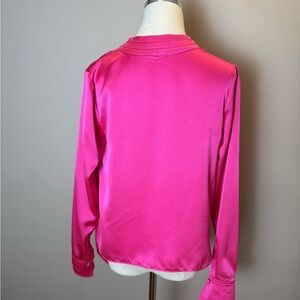 A drapey cowl neck fronts this day-to-night blouse crafted from rich satin.
