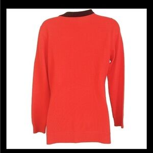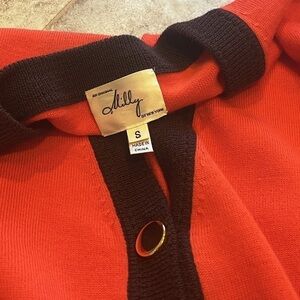 MILLY New York Orange Brown Trim Knit Wool Button Down Cardigan Sweater Small
