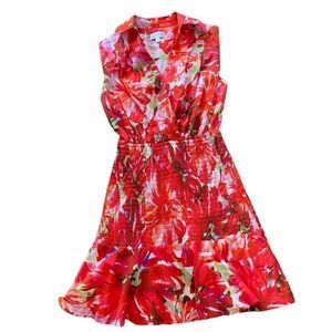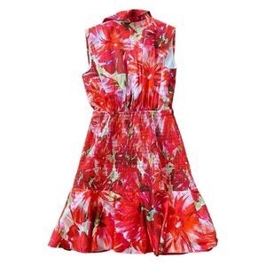 Milly Nora Brushstroke Floral Smock Poplin A-Line Dress in size 4. The dress is pre-owned and there are no stains or rips. Minor wear/pilling. Beautiful dress.