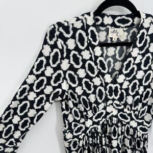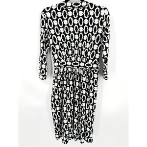 MILLY OF NY Black White Geometric 3/4 Sleeve Fit & Flare Mini Dress Size Small S