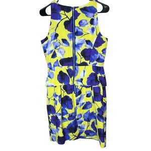 MILLY Of New York Yellow Peplum Shift Dress Retro Sheath Lined Colorful Size 8