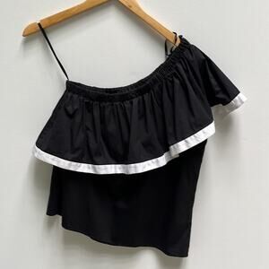 MILLY One Shoulder Ruffle Blouse Black White Size M