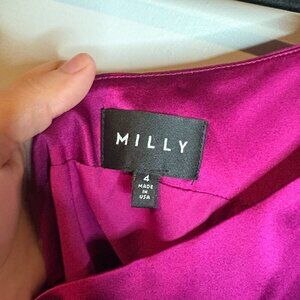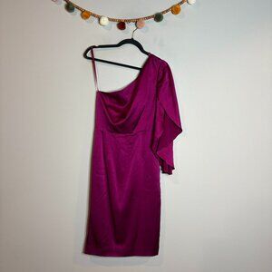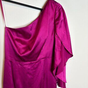 MILLY One-Shoulder Silk-Blend Midi Dress in Berry