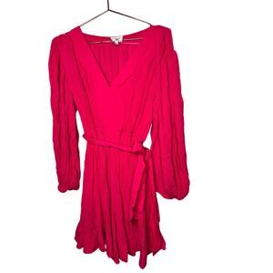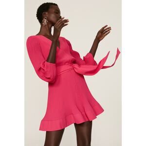 MILLY Pink V-Neckline Long Sleeve Hourglass Tie Waist Liv Mini Dress Size 8