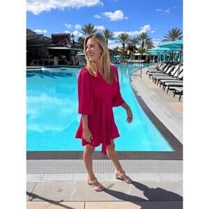 The MILLY Liv Mini Dress is a sophisticated yet playful piece that effortlessly enhances your wardrobe. Designed in a vibrant pink hue, this dress features a flattering V-neckline and long sleeves, striking the perfect balance between elegance and modern flair. The hourglass silhouette is cinched at the waist with a chic tie detail, accentuating the figure while adding a stylish touch. The mini-length hemline adds a youthful and flirty vibe, making it ideal for a variety of occasions. Crafted in Size 8, this dress transitions seamlessly from daytime events.