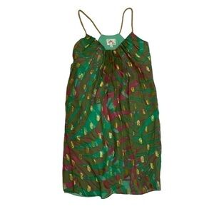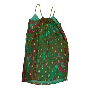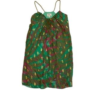 MILLY Pink and Green Metallic Mini Dress with Gold Rope Straps Size 2 GUC