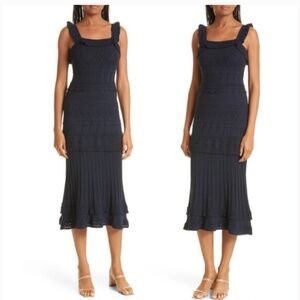 MILLY Pointelle Knit Midi Dress, Mint Condition (black, size P)