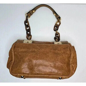MILLY SOPHIA SHOULDER BAG BROWN GOLD TAN LEATHER RESIN CHAIN STRAP MSRP $395