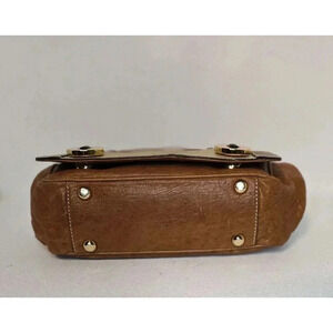 * MILLY SOPHIA SHOULDER BAG is a designer medium-sized rectangular bag made of brown, tan, and gold leather.