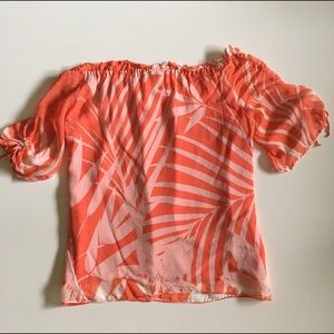 MILLY Silk Coral Tropical Off Shoulder Top