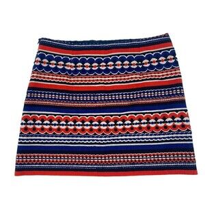 MILLY Size 2 Embroidered Mini Skirt Stripes Blue Red White USA. Great condition. See pictures for approximate measurements