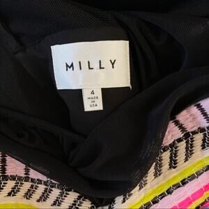 MILLY Size 4 Malhia Striped Aztec Sheath Dress Cocktail Black Neon Pink Yellow