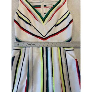 MILLY St. Tropez Allison Dress Sleeveless V-Neck Florescent Stripes Pockets