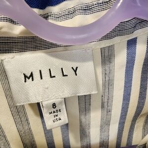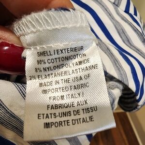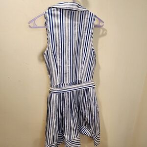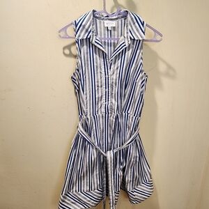 Self-tie belt cinches waist. Straight hem. Cotton/