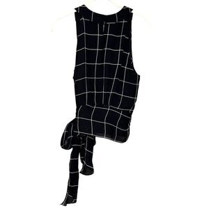 MILLY Top Size 4 Lauren Black White Check Print Silk Sleeveless Lined Tie Waist
