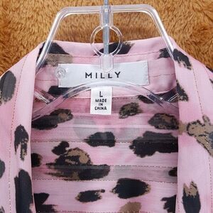 MILLY Top Womens Large Pink Cheetah Button Up Shirt Chiffon Sheer Leopard