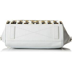 Very good pre-owned condition. MILLY Tote Bag Women's White Dylan Leather Woven. White leather, patent gold leather, and black leather.