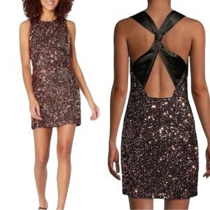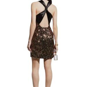 Turn heads in this glamorous Milly Vivi Tinsel Sequin Mini Dress in gold, size 6. This stunning mini dress features a body-hugging fit, sleeveless cut, round neckline, and a dramatic open back. Fully lined with allover shimmering gold tinsel sequins for a show-stopping look. Includes a secure side zipper for an easy, flattering fit.
