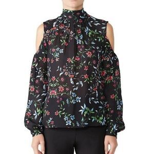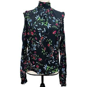 MILLY long sleeve 100% silk floral printed cold shoulder Dana Top blouse size 6