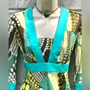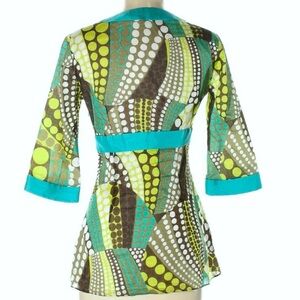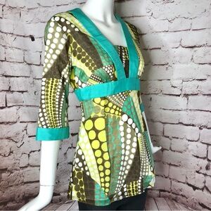 MILLY of NEW YORK Turquoise + Green Mod Print tunic top 3/4 sleeves
