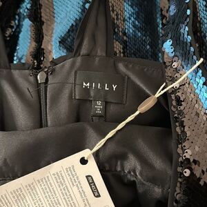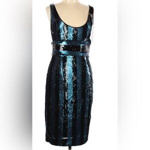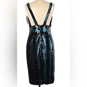 MILLY Veronica Sleeveless Striped Sequin Cocktail Dress, Blue/Black 12