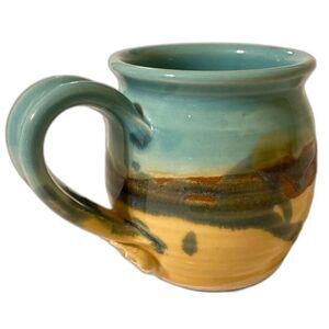 MILO Artist Signed Pottery Ceramic Coffee Cup Mug Earthtones Landscape 4 x 5 in