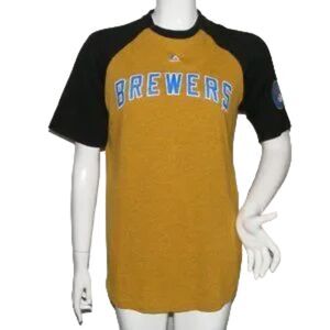 MILWAUKEE BREWERS Tee, M, Blue/Yellow, Logo, Cooperstown collection, Baseball