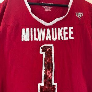 MILWAUKEE BUCKS Red Sequin Jersey T-Shirt