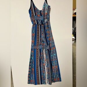 MIMI CHICA JUMPSUIT. AMAZING MULTICOLOR JUMP SUIT. FLOWY, HALTER NECK