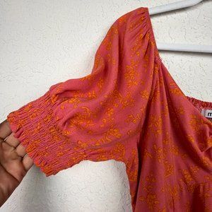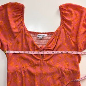 MIMI CHICA Womens L Scoop Neck Floral Smocked Sleeves Dress Pockets