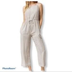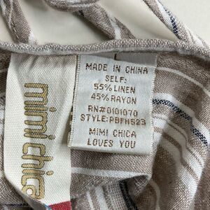 MIMI CHICA L Linen Blend TIE UP shoulder Striped Wide Leg Slit Leg Jumper