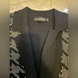 The Retrofete Black and White Long Sleeve Sheath Dress is a chic and versatile piece perfect for both work and casual occasions. Crafted with a sophisticated v-neckline and a form-fitting silhouette, this dress exudes elegance. The classic black and white color palette ensures a timeless appeal, making it a staple in any wardrobe.