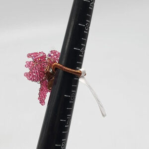 MINDY LAM Pink Green Swarovski Beaded Flower HTF Retired Ring Size 5
