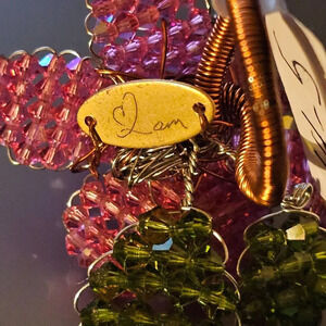 This retired Mindy Lam ring features pink and green Swarovski beads in an exquisite flower design. Size 5, it's a unique, hard to find piece that adds a pop of color to any outfit.