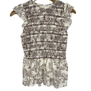 MINE Anthropologie Blouse Smocked Peplum Flutter Sleeve Womens S Cream Brown
