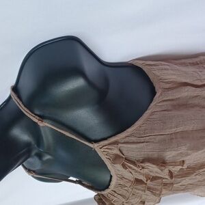 “MINE “Boho woman’s sleeveless Tan top, Flowers, Ruffles, Elastic