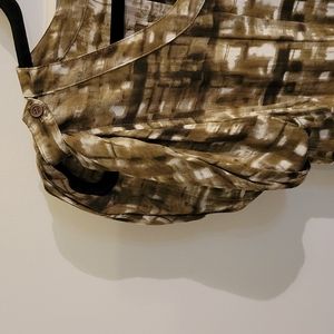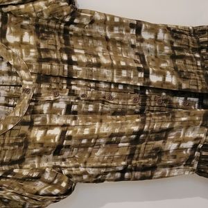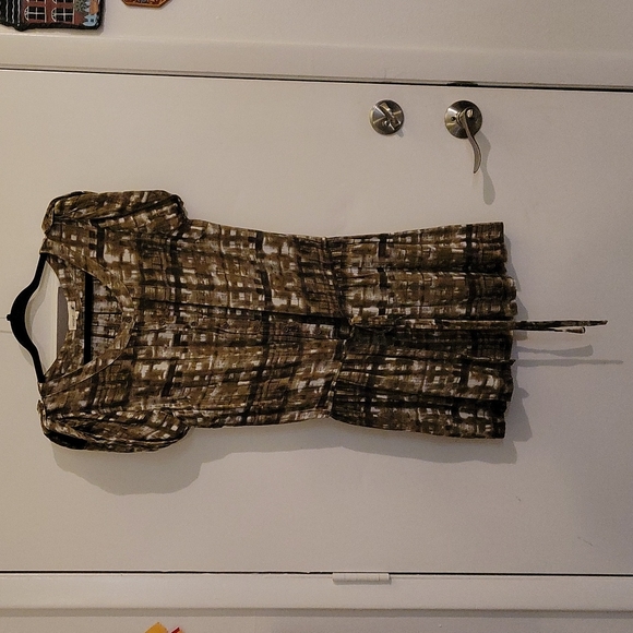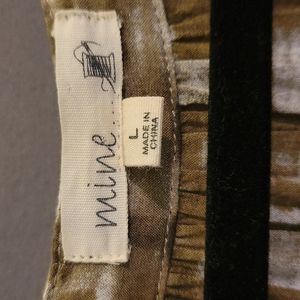 Mine, size: L, drawstring casual dress, green and white print, 100% Polyester, used only once