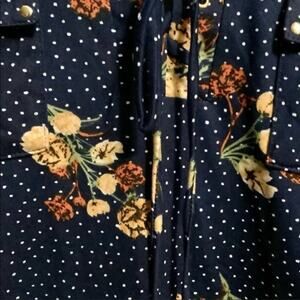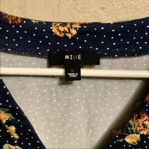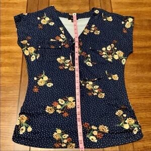 MINE Navy & Yellow Floral Short Sleeve Top V Neck Size Small