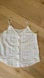 This camisole features a delicate white fabric with subtle embellishments, offering a light and airy feel. The buttoned front and adjustable straps add a touch of elegance, making it perfect for warm weather wear.