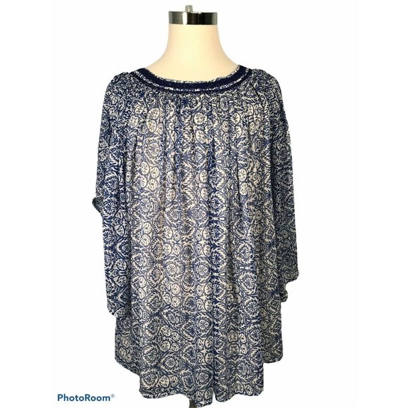 MING SUIT Women’s Blouse Size 8 Blue White Flowy
