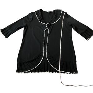 MING WANG BEAUTIFUL BLACK OPEN CARDIGAN WITH CREAM EMBROIDERED TRIM SIZE LARGE